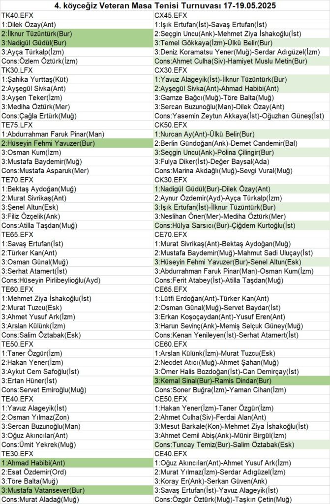 • 4. Köyceğiz Ulusal Veteran Masa Tenisi Turnuvası